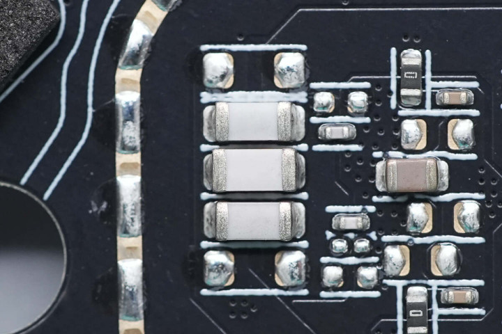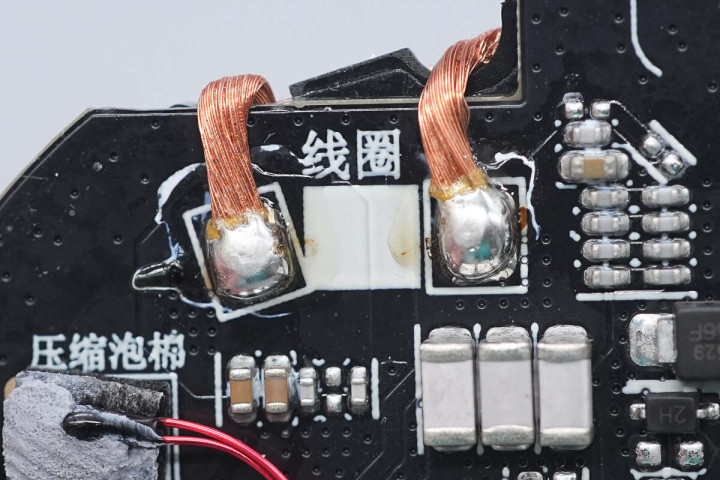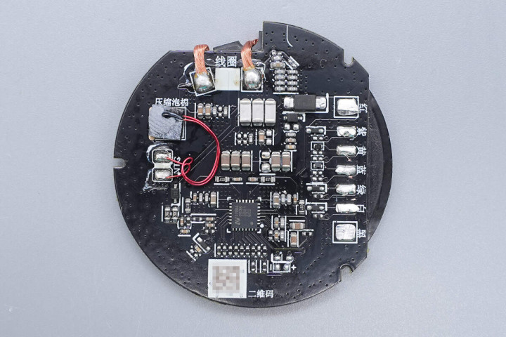 将模块分离,PCB板背面设有无线充电芯片、热敏电阻、NPO谐振电容等器件。