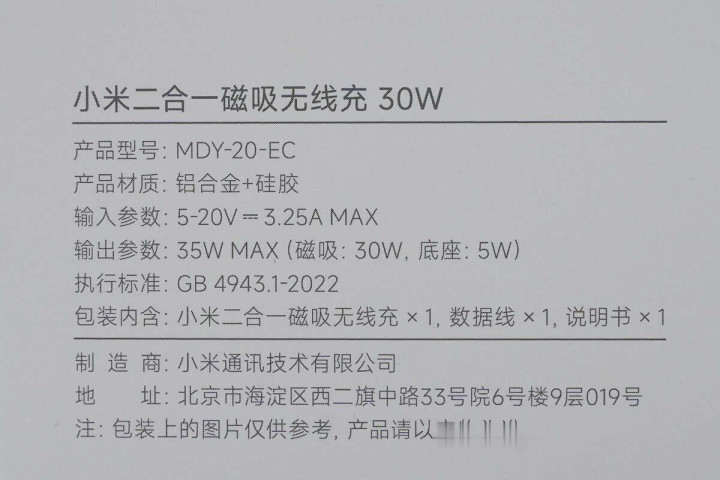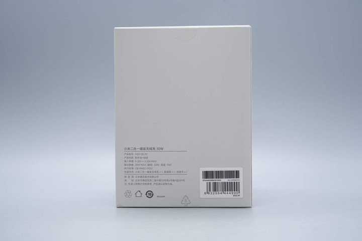 包装内含小米30W二合一磁吸无线充、数据线以及快速入门指南。
