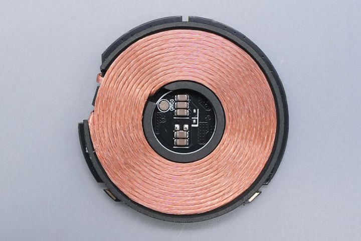 边缘磁铁环打胶水加固,无线充电线圈采用利兹线绕制。