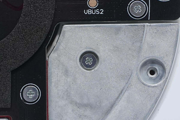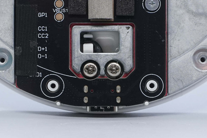 PCB板以及两块配重铁都是通过螺丝进行固定。